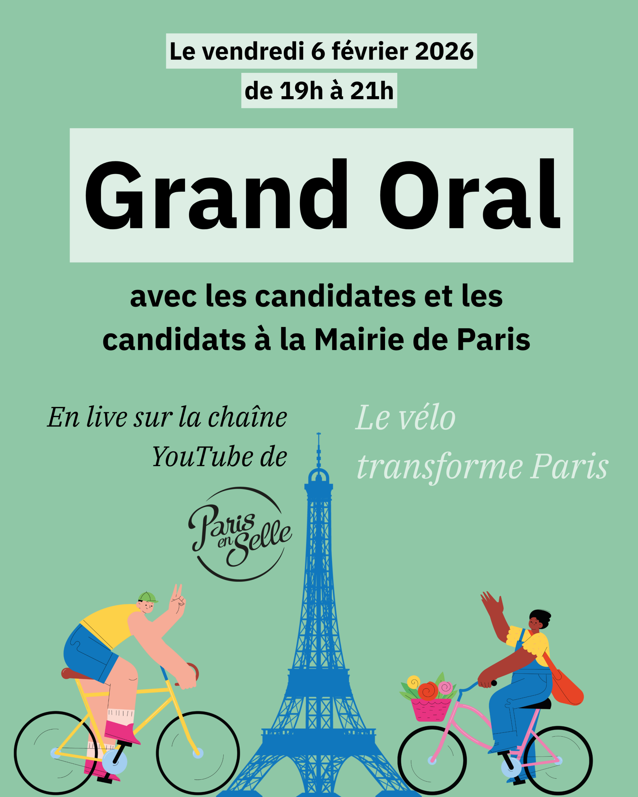 A l’occasion des élections municipales 2026, Paris en Selle organise un Grand Oral sur le thème “Le vélo transforme Paris” avec les candidates et candidats à la mairie de Paris. RD…