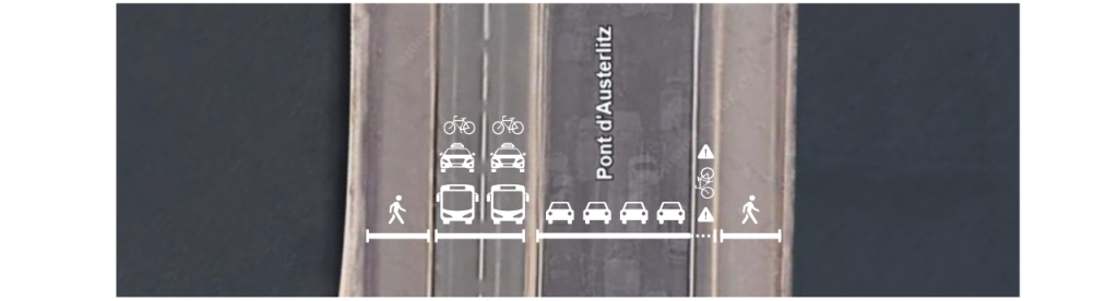 Le pont d’Austerlitz est un cas d’école des inconvénients et dangers qu’il y a à mélanger les flux, car il cumule :