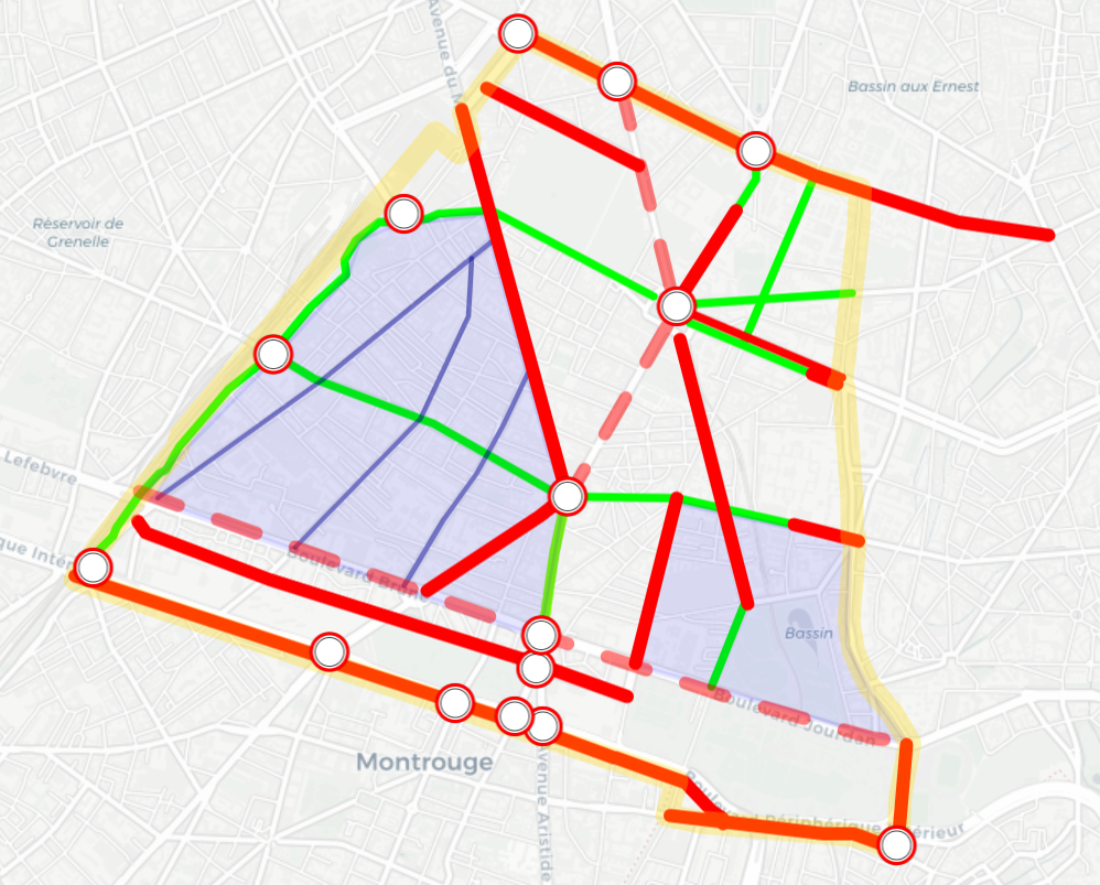 Les portes vers les communes limitrophes (Orléans, Châtillon, Gentilly, Vanves…) seraient toutes sécurisées pour assurer la continuité cyclable. Les boulevards des maréchaux verraient leurs coupures résorbées.
