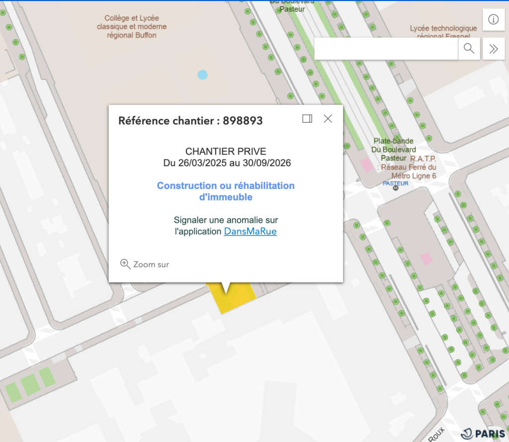 - de quel type de chantier il s’agit : Ville de Paris, Opérateurs de réseau, Tiers