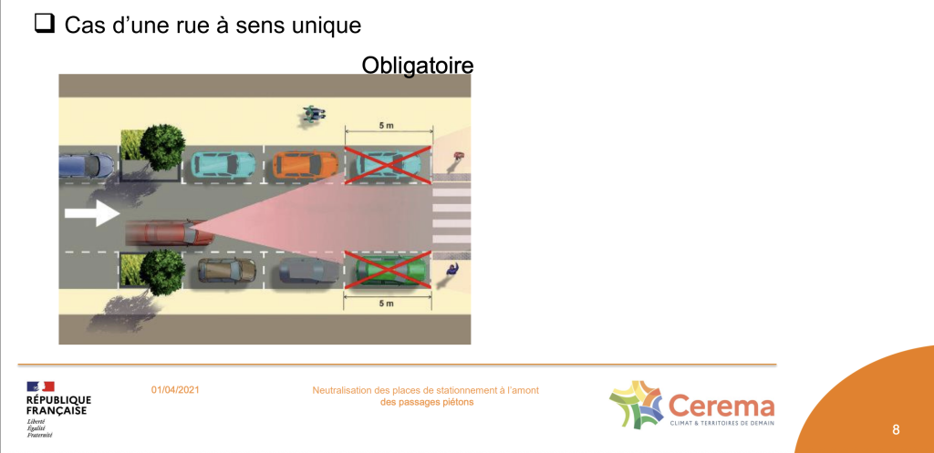 La loi d’orientation des mobilités (LOM) demande l’obligation de la suppression du stationnement motorisé sur les 5 mètres en amont des passages pour piétons. Cette mesure est impactante : les collectivités ont jusqu’au 31 décembre 2026 pour la mettre en place !